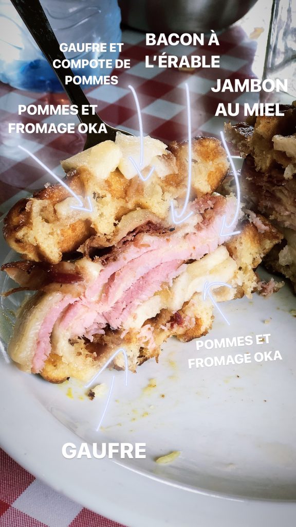La cabane à pommes Labonté située sur les hauteurs d’Oka sert depuis 2017 un menu ultra luxe du temps des sucres. Ici tout est local : les pommes du verger, le fromage d’Oka en contre-bas et le miel du rucher. Un subtil mélange sucré/salé dans une cabane centenaire cosy et conviviale d’une soixantaine de places. Labonté c’est une histoire de famille, Nathalie en a eu le coup de coeur, l’achète et la gère avec son mari (aux fourneaux). Le menu garde les principaux codes de la cabane à sucre, mais est revisité en y ajoutant des pommes et de l’originalité. Coup de coeur ensuite pour l’étagé campagnard (ce beau « burger » de gaufres) qui me fait encore rêver. Le rapport qualité, quantité, prix est imbattable ; et le service attentionné. Lorsque tu as fini le repas, il n’y a pas d’activités à faire outre que te promener dans le verger. La cabane à pommes est accès sur le plaisir de te faire vivre une expérience gastronomique plus qu’une expérience traditionnelle. Et elle le fait merveilleusement bien!